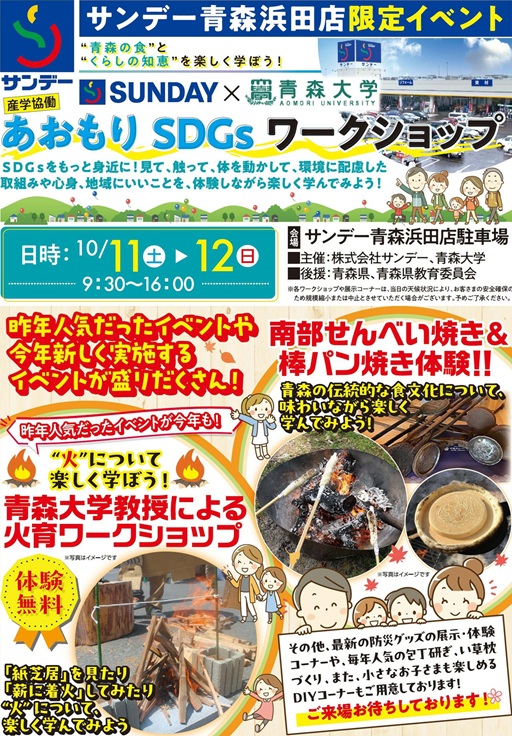 | イベント名 | 【産学協働】あおもりSDGsワークショップ@サンデー青森浜田店(青森県青森市) |